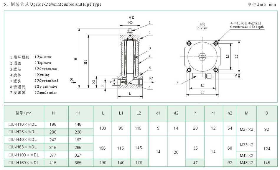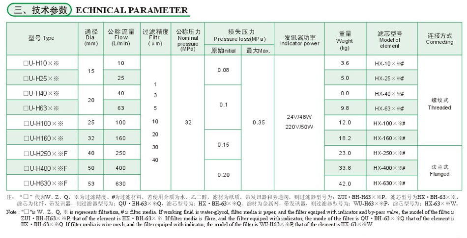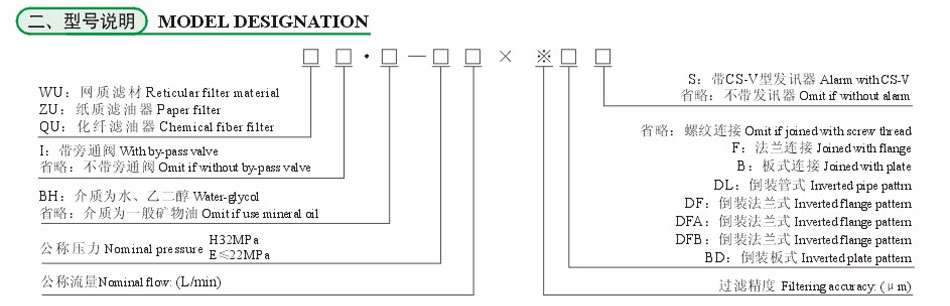 ZU-H壓力管力過濾器安裝在液壓系統的壓力管路上,用以濾除液壓油中混入的機械雜質和液壓油本身化學變化所產生的膠質、瀝清質、炭渣質等,從而防止閥芯卡死、節(jié)流小孔縫隙和阻尼孔的堵塞以及液壓元件過快磨損等故障的發(fā)生